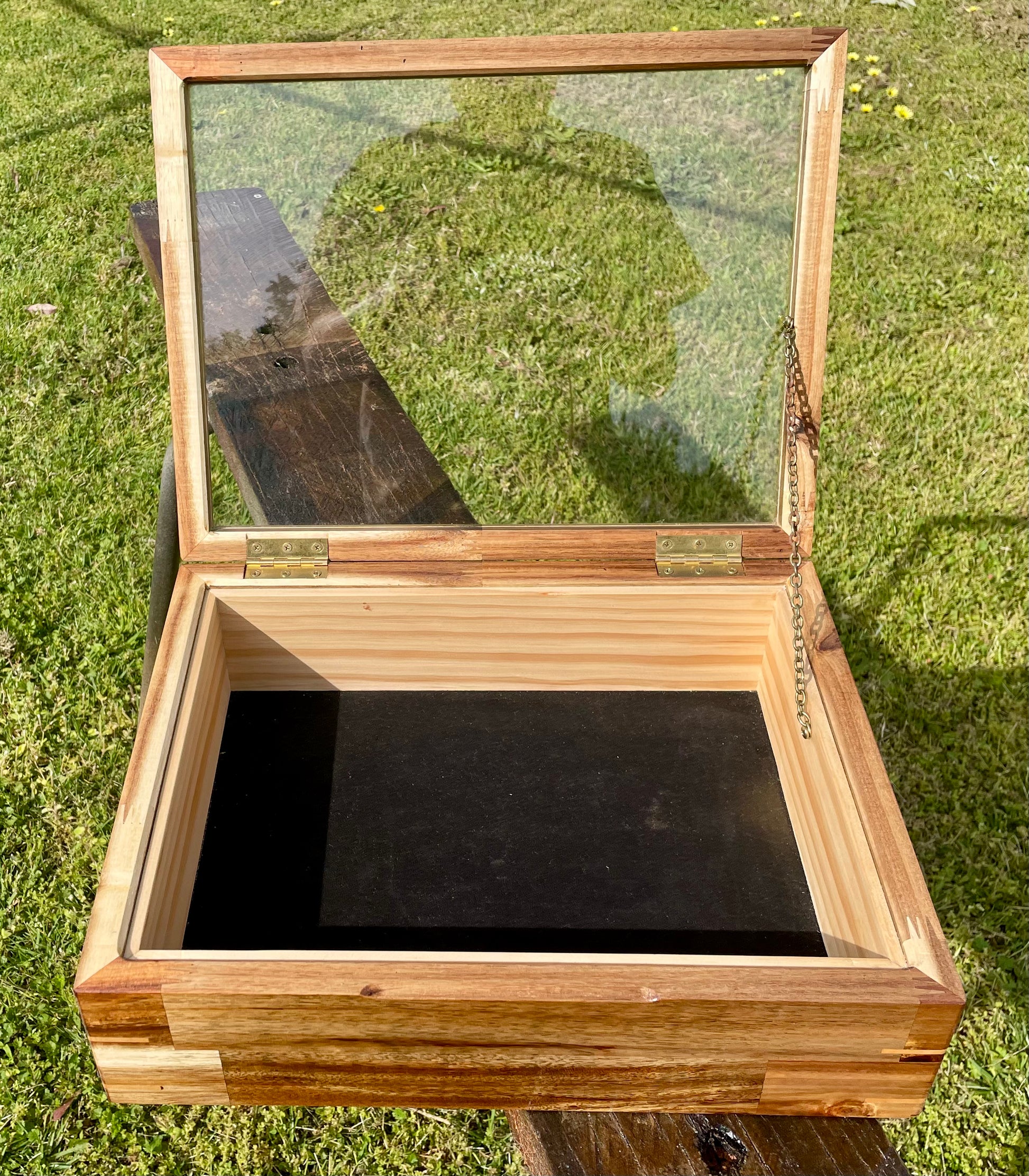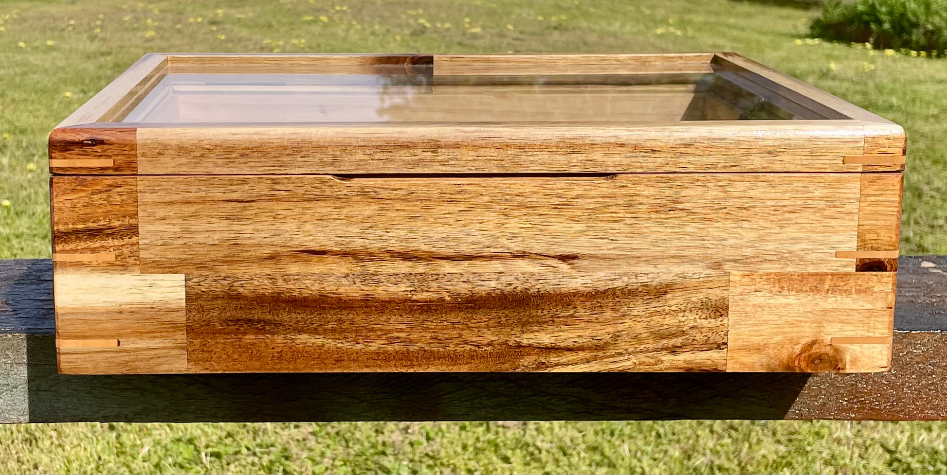 A display box with a clear Perspex lid and splines